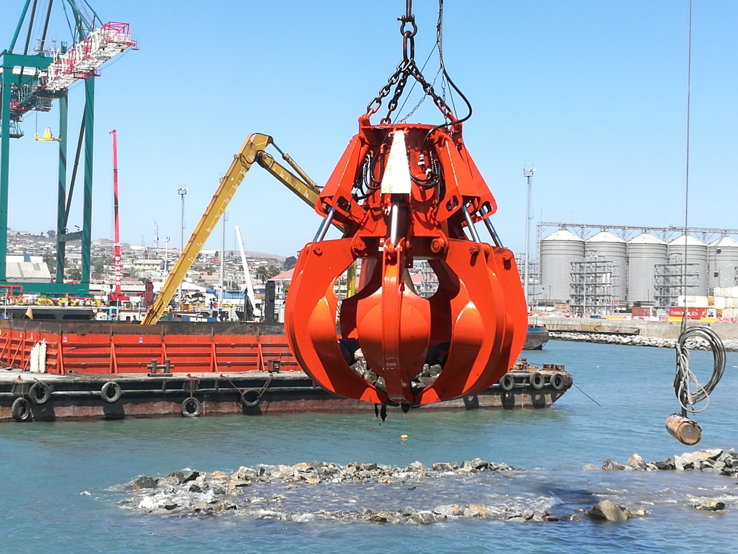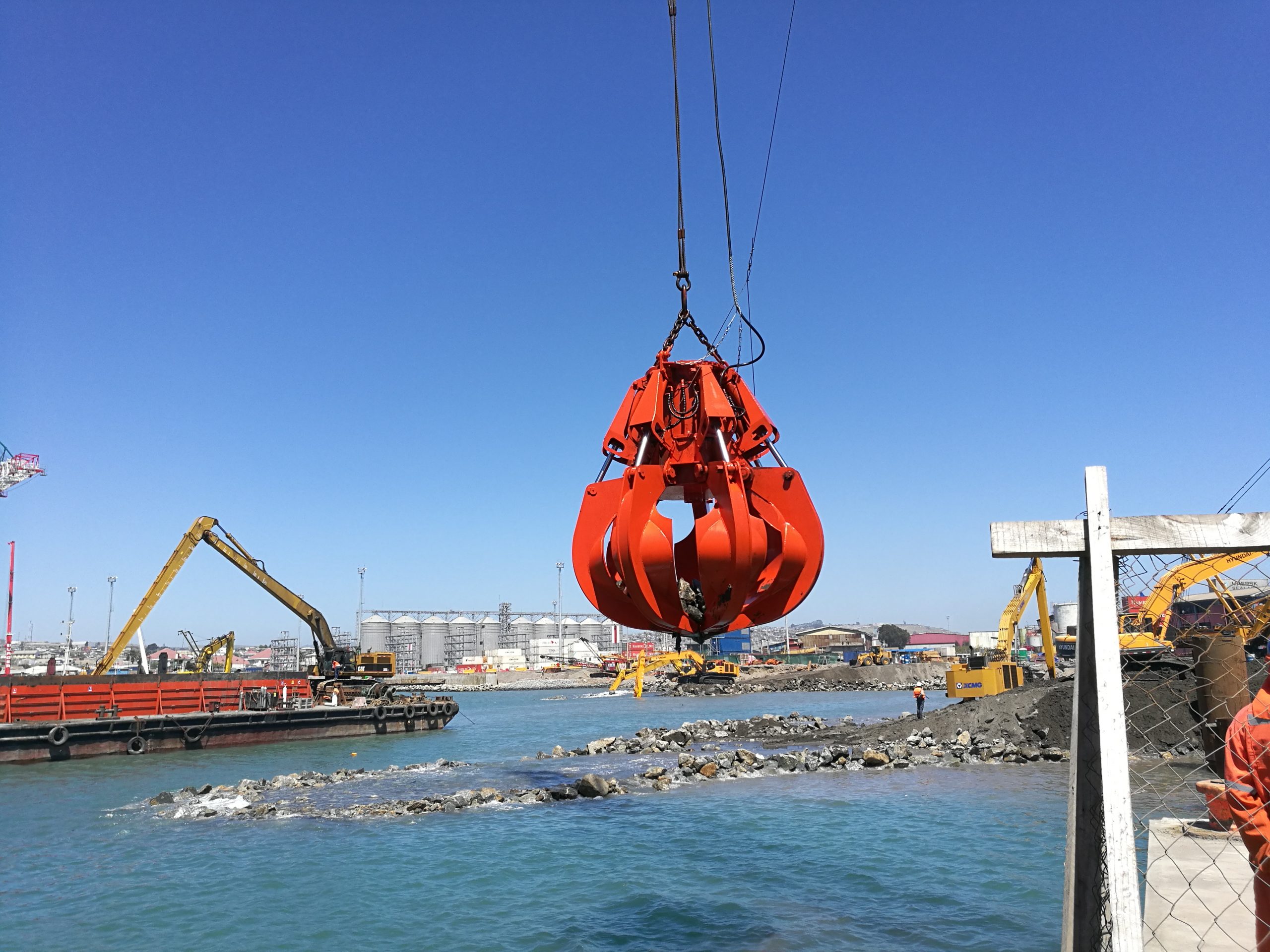 大型疏浚抓斗是一种能在水下从事淤泥、硬泥,铁板砂,爆破礁石,甚至沉船等航道疏浚清淤及打捞的有效工具。抓斗内滑轮采用多道密封,保证抓斗在几十米的海水中也不会渗入水和泥沙。抓斗有多瓣和双瓣之分,我司经过多年研究,已经形成起重量从6吨到200吨的几十种系列产品。改种类抓斗适用于单索、双索或四索起重机。