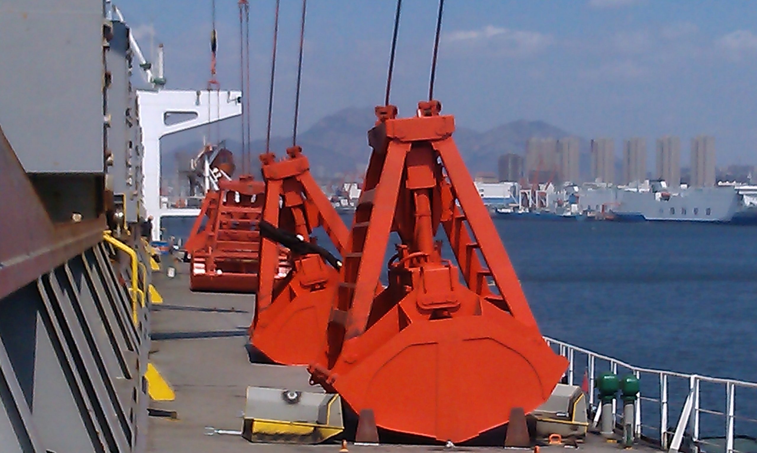 无线遥控抓斗是一种不需要外界能源,在料堆上通过起重机吊钩的起升自动闭合,又能在空中任意位置通过遥控打开的新颖单索散货抓斗。抓斗零部件模块化设计,易于维护及维修,更适用于远航使用;系统完全防水设计,可有效防止海浪及雨水,每台抓斗都经过严格的24小时水下浸泡试验;采用多级缓冲打开,既减少了对起重机及抓斗本身的冲击,又保证了抓斗能快速卸货;抓斗故障率低,能保证连续24小时不间断工作;抓斗打开用电量少,一次充电可以保证使用180小时以上;使用简单,起重机不需要配备其它辅助装置,将抓斗挂在吊钩或集装箱吊具上就可使用。目前大量应用于散货船及集装箱、散货两用的码头上,并批量出口。